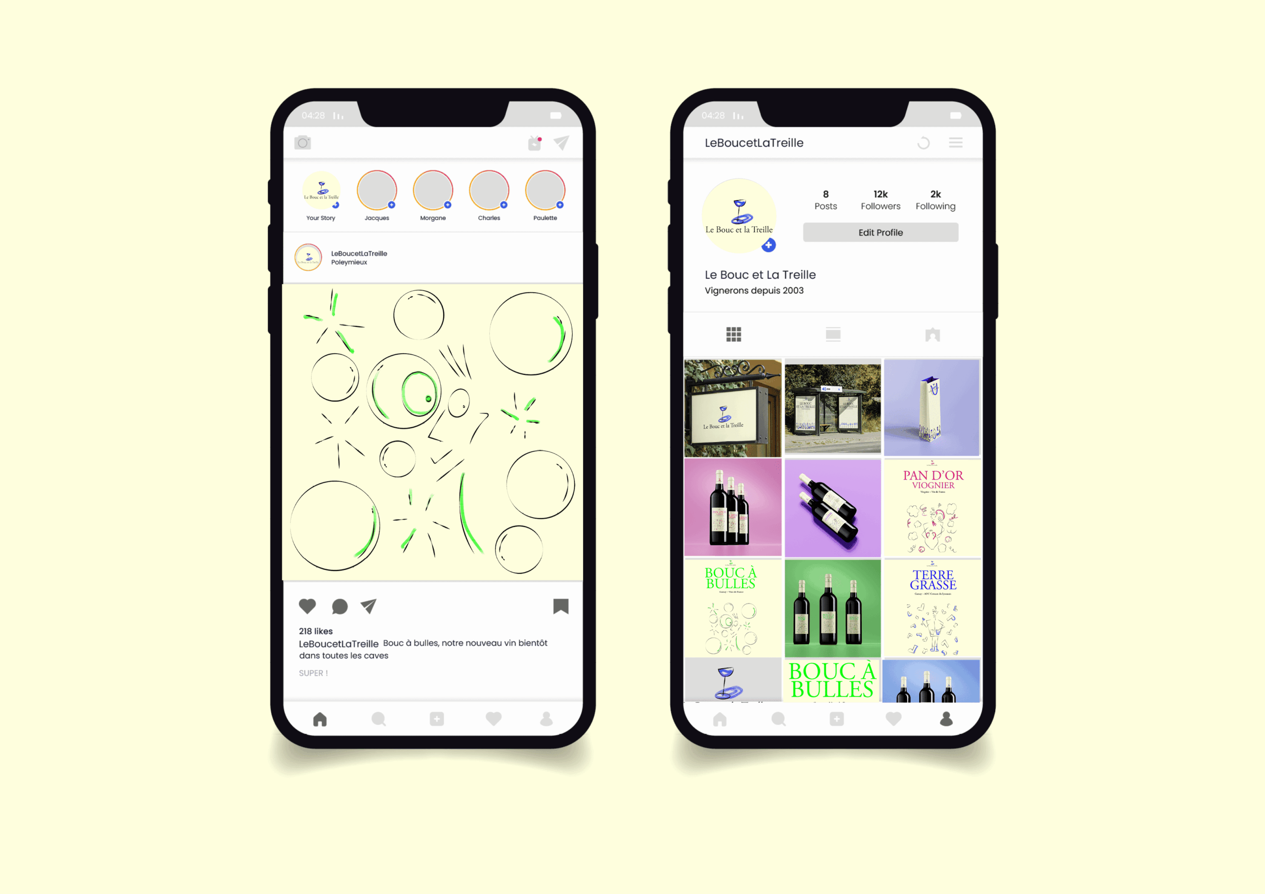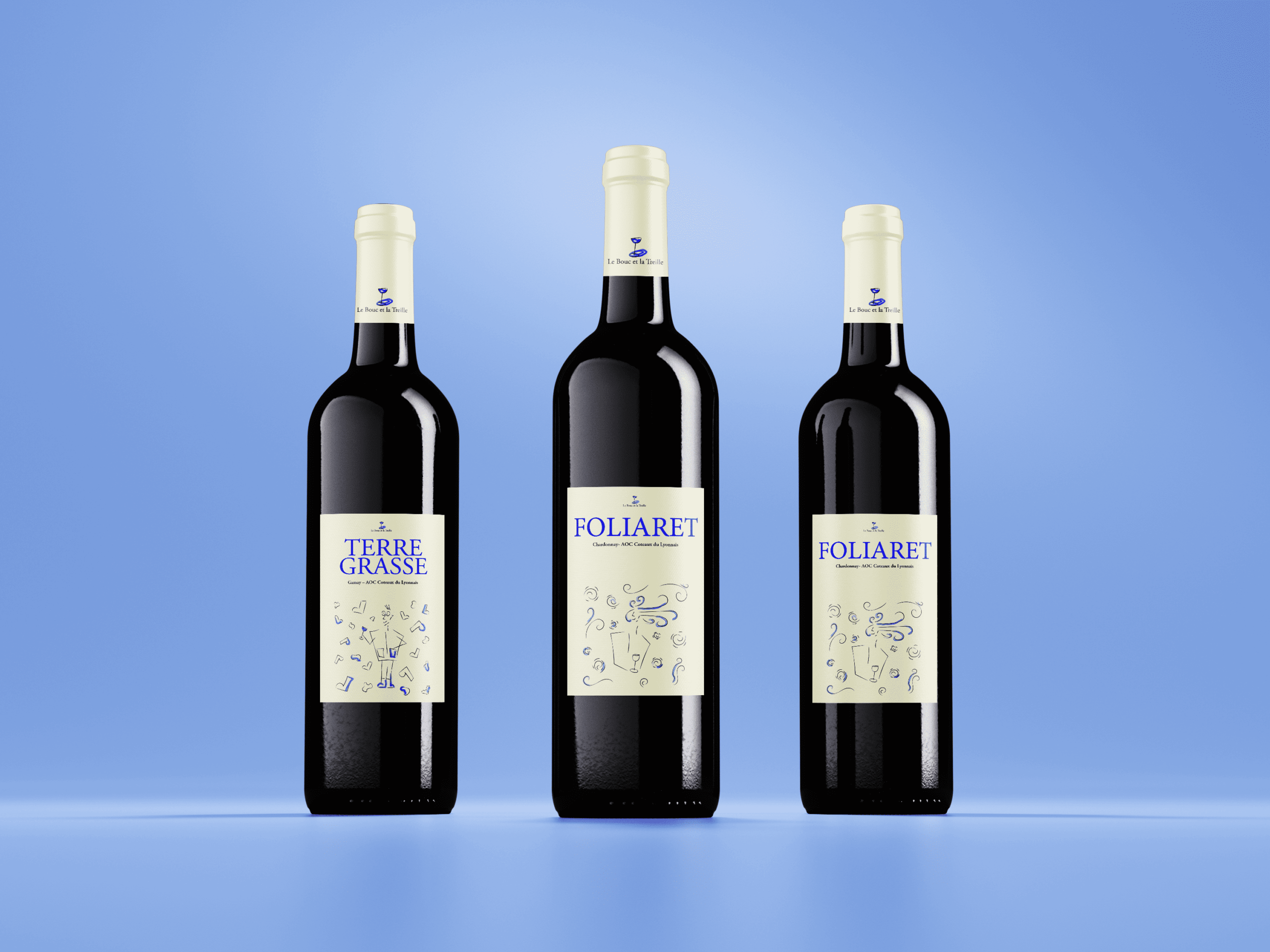 Voici un projet haut en couleur : la refonte de l’identité graphique d’une marque de vin. Le logo, les étiquettes, le packaging ainsi que les visuels pour les réseaux sociaux ont été repensés avec une touche d’humour.